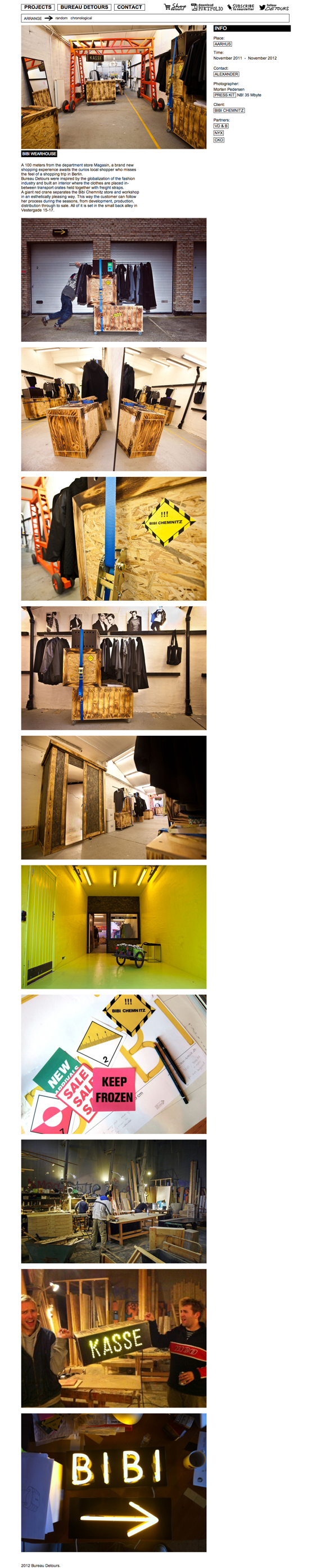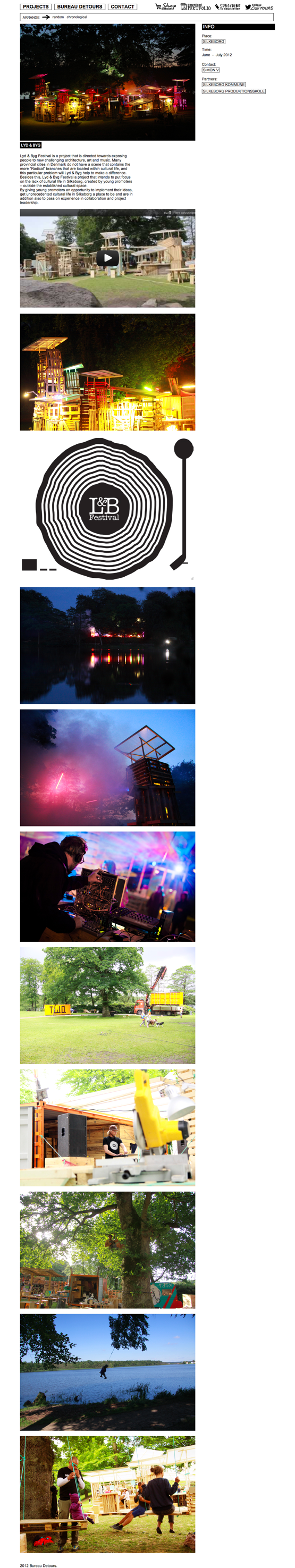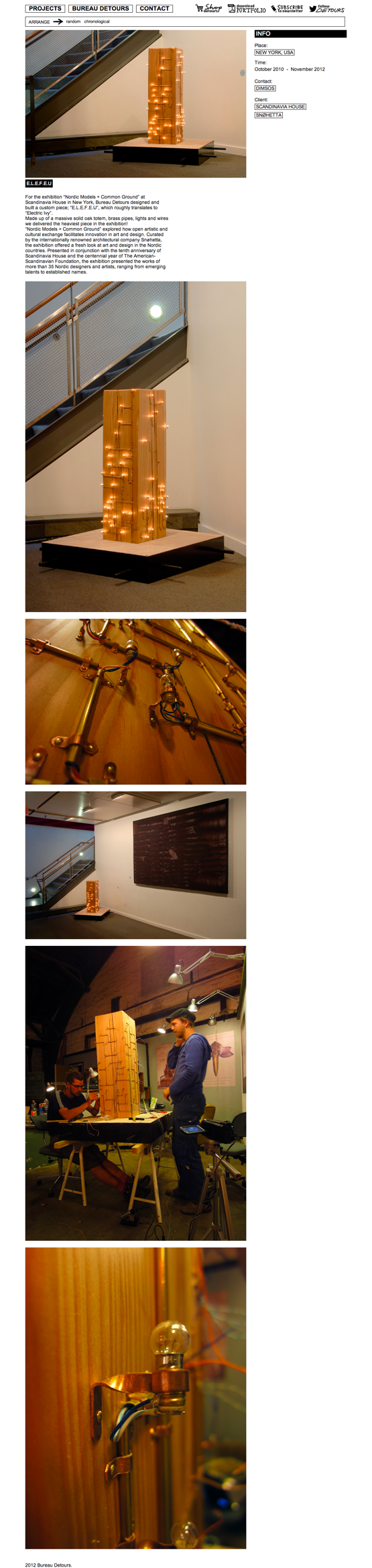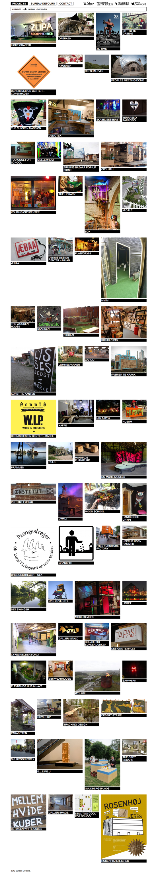 Concept and development of the Bureau Detours portfolio website with contextual views, structuring of project details and searchable content
